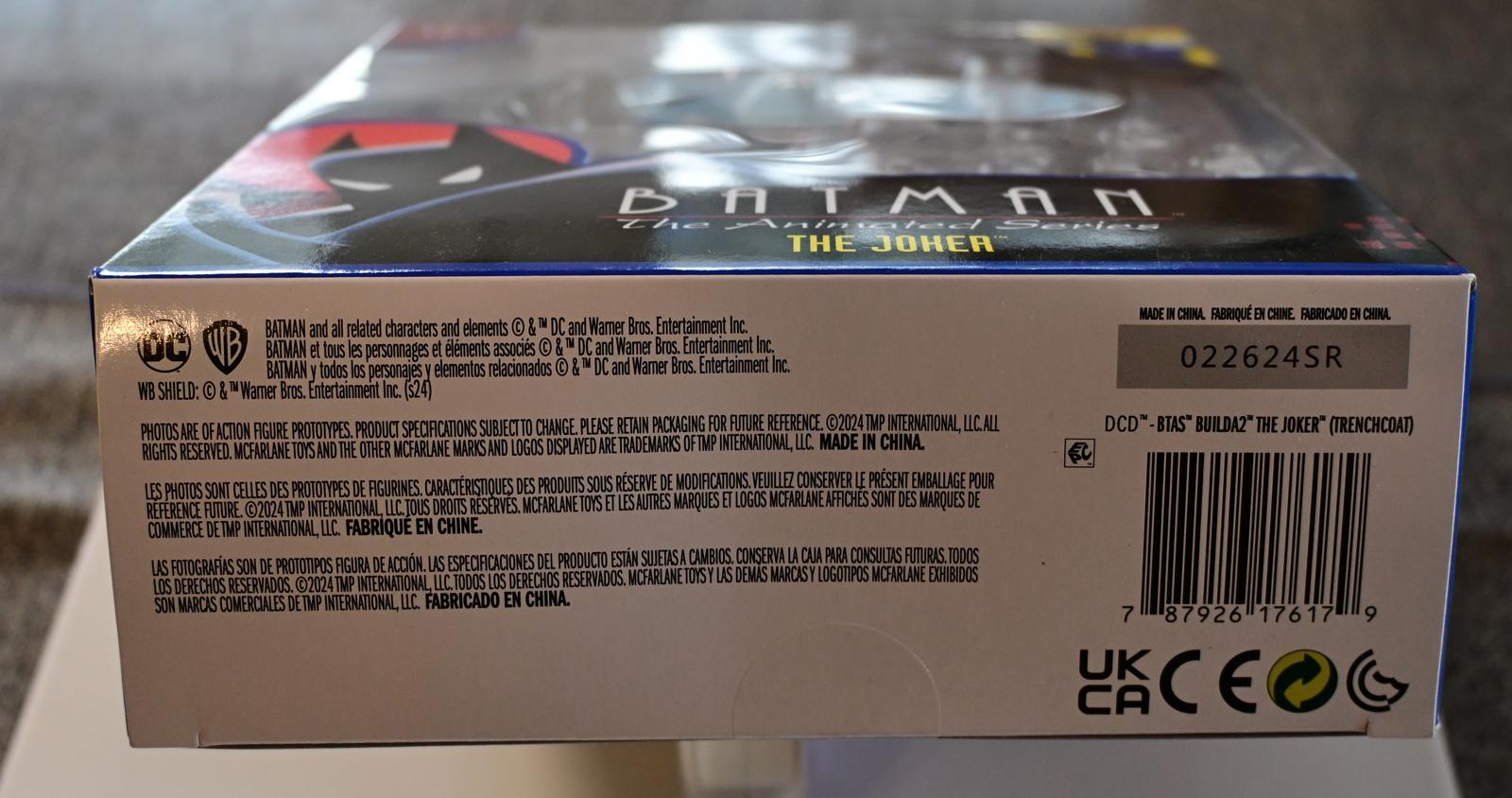 Features The Joker as seen in Batman: The Animated Series, complete with his signature purple suit, green hair, and menacing smile.
